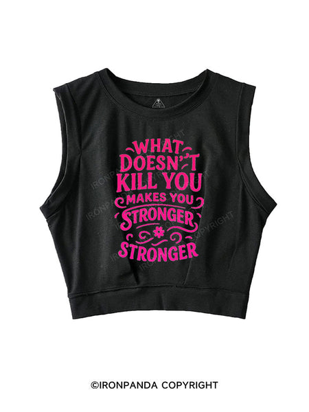 WHAT DOESN'T KILL YOU MAKES YOU STRONGER SLEEVELESS CROP TOPS