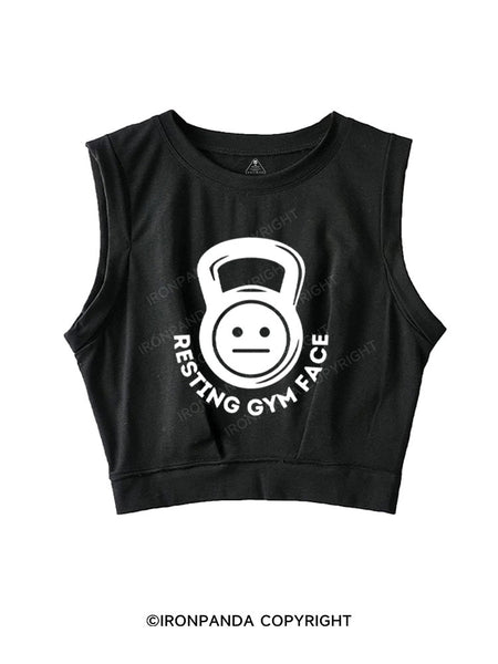 RESTING GYM FACE SLEEVELESS CROP TOPS