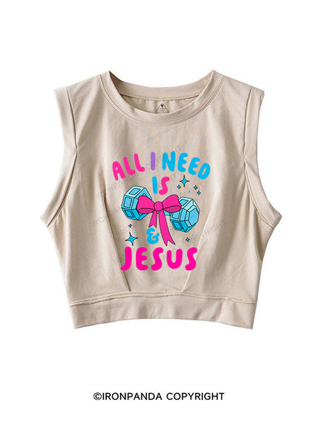 ALL I NEED IS MY WEIGHTS & JESUS SLEEVELESS CROP TOPS