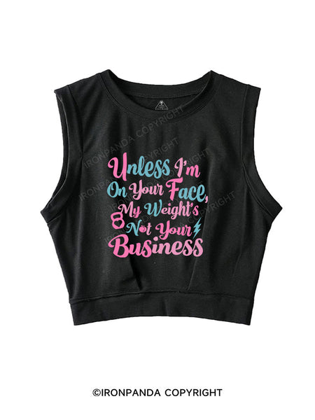 UNLESS I'M ON YOUR FACE, MY WEIGHT'S NOT YOUR BUSINESS SLEEVELESS CROP TOPS