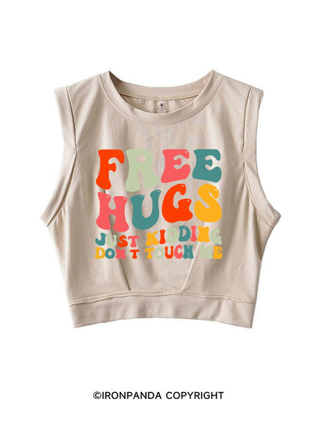 FREE HUGS JUST KIDDING DON'T TOUCH ME SLEEVELESS CROP TOPS