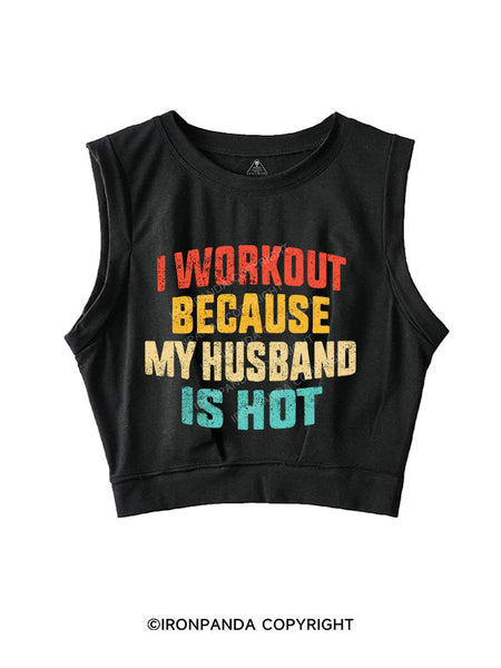I WORK OUT BECAUSE MY HUSBAND IS HOT SLEEVELESS CROP TOPS