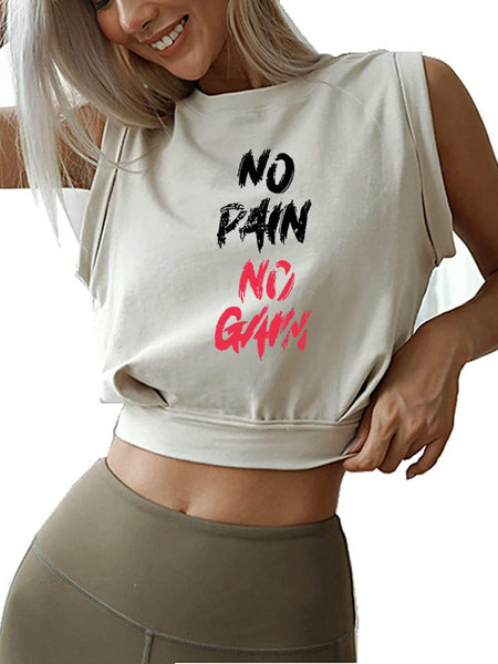 NO PAIN NO GAIN SLEEVELESS CROP TOPS
