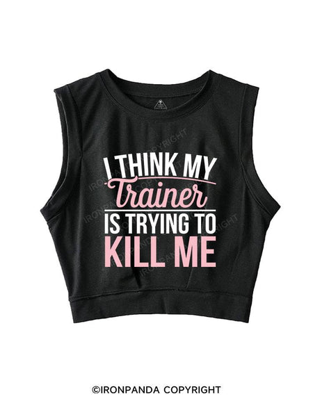 I THINK MY TRAINER IS TRYING TO KILL ME SLEEVELESS CROP TOPS