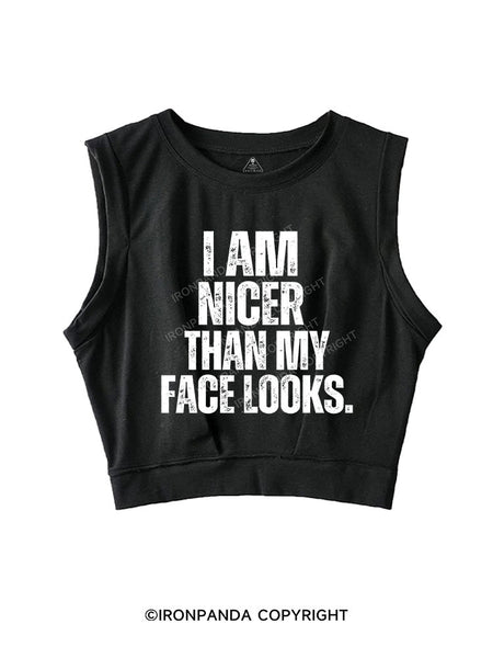 I'M NICER THAN MY FACE LOOKS SLEEVELESS CROP TOPS