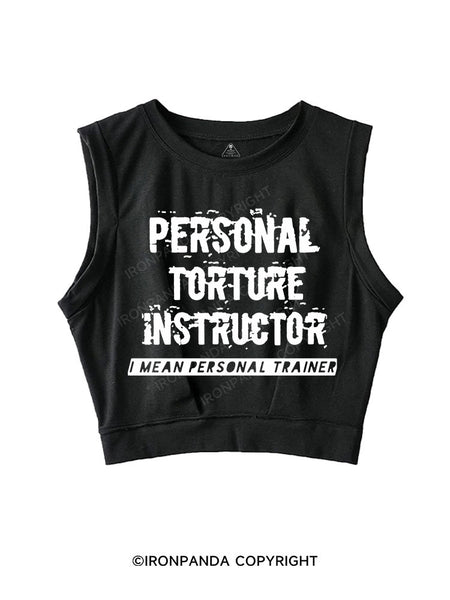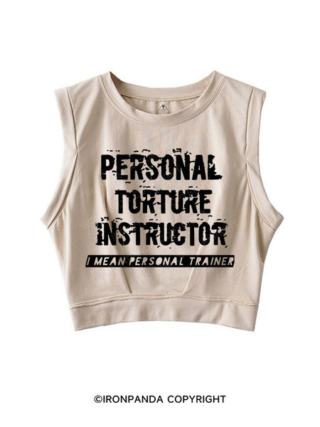 PERSONAL TORTURE INSTRUCTOR (I MEAN PERSONAL TRAINER) SLEEVELESS CROP TOPS