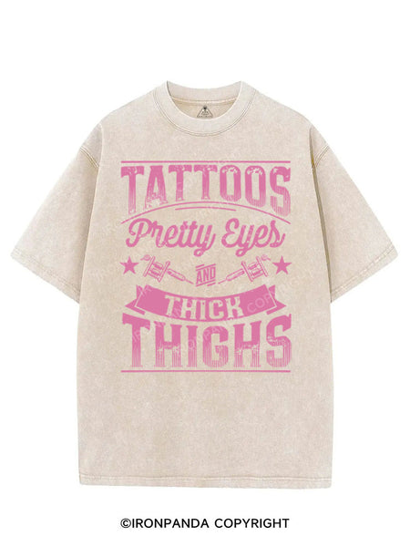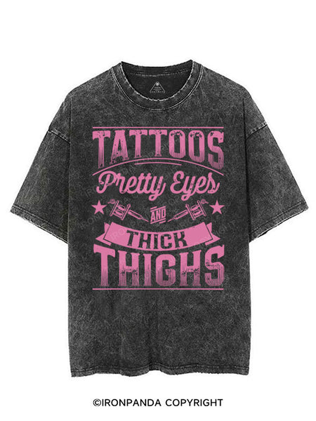 TATTOOS PRETTY EYES AND THICK THIGHS VINTAGE GYM SHIRT