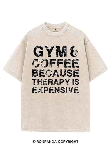 GYM&COFFEE BECAUSE THERAPY IS EXPENSIVE VINTAGE GYM SHIRT