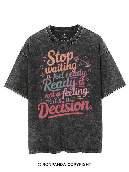 STOP WAITING TO FEEL READY, READY IS NOT A FEELING, IT'S A DECISION VINTAGE GYM SHIRT