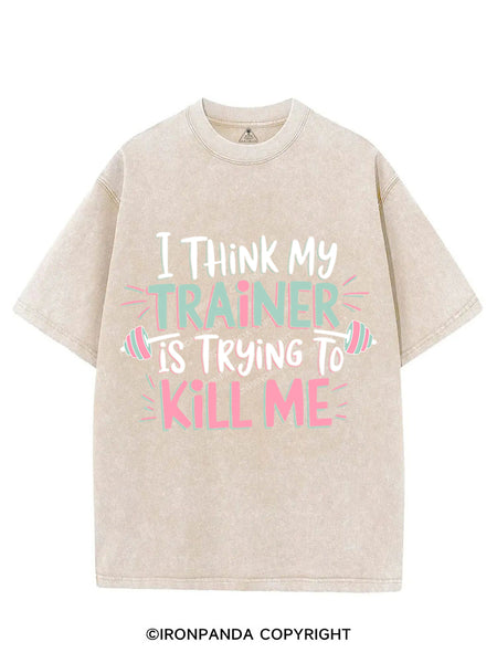 I THINK MY TRAINER IS TRYING TO KILL ME VINTAGE GYM SHIRT