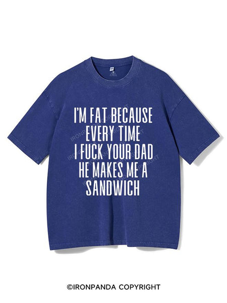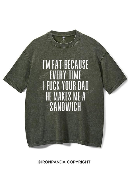 I'M FAT BECAUSE EVERY TIME I FUCK YOUR DAD HE MAKES ME A SANDWICH VINTAGE GYM SHIRT