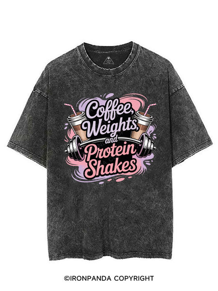 COFFEE WEIGHTS AND PROTEIN SHAKES VINTAGE GYM SHIRT