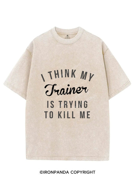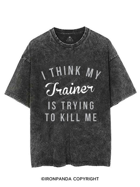 I THINK MY TRAINER IS TRYING TO KILL ME VINTAGE GYM SHIRT