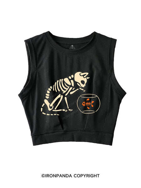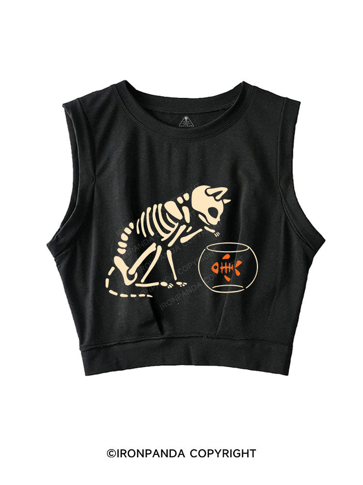 CAT AND FISH SKELETON SLEEVELESS CROP TOPS