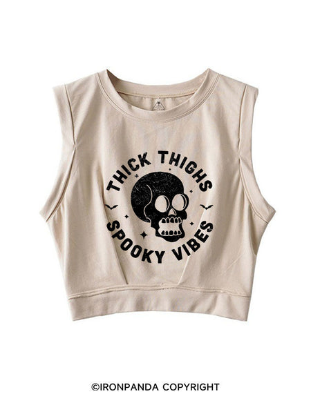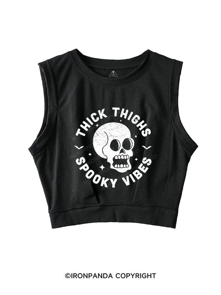 THICK THIGHS SPOOKY VIBES SLEEVELESS CROP TOPS