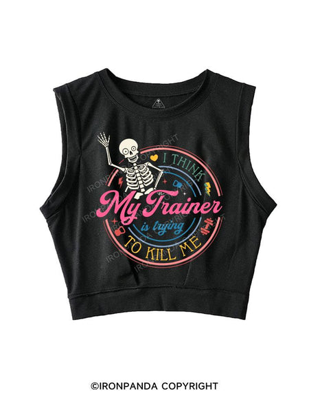 I THINK MY TRAINER IS TRYING TO KILL ME SLEEVELESS CROP TOPS