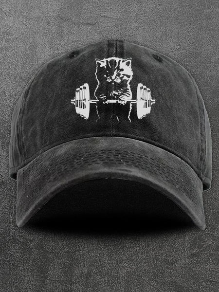 Weightlifting Cat Washed Gym Cap