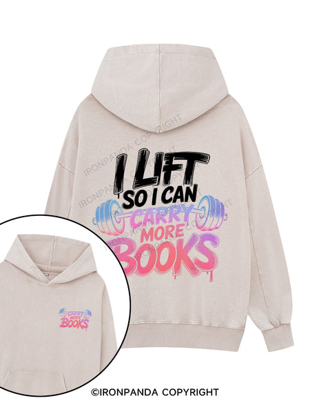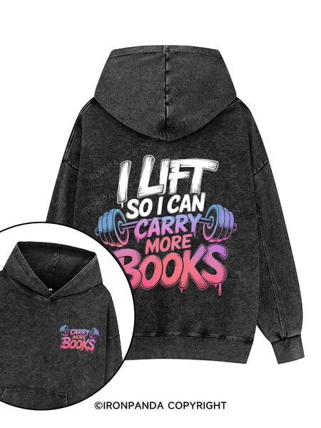 I LIFT SO I CAN CARRY MORE BOOKS Printed Washed Gym Hoodie