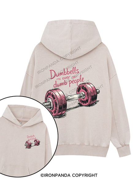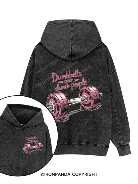 Dumbbells over dumb people Printed Washed Gym Hoodie