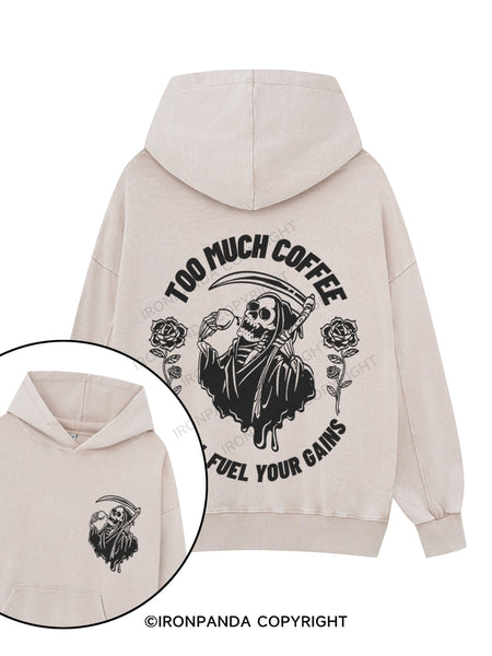 TOO MUCH COFFEE WILL FUEL YOUR GAINS Printed Washed Gym Hoodie