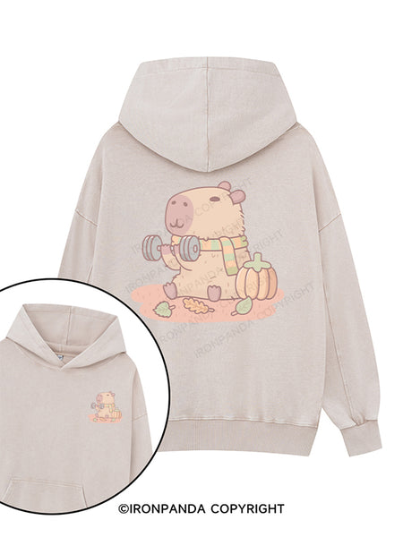 Autumn Reps, Capy Vibes Printed Washed Gym Hoodie