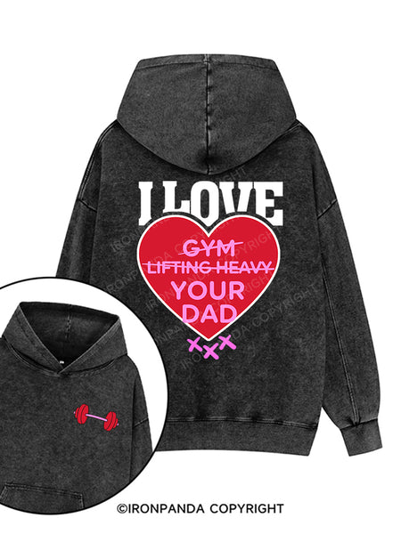 I LOVE GYM LIFTING HEAVY YOUR DAD Printed Washed Gym Hoodie