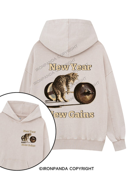 New Year, New Gains Printed Washed Gym Hoodie