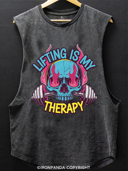 LIFTING IS MY THERAPY SCOOP BOTTOM COTTON TANK