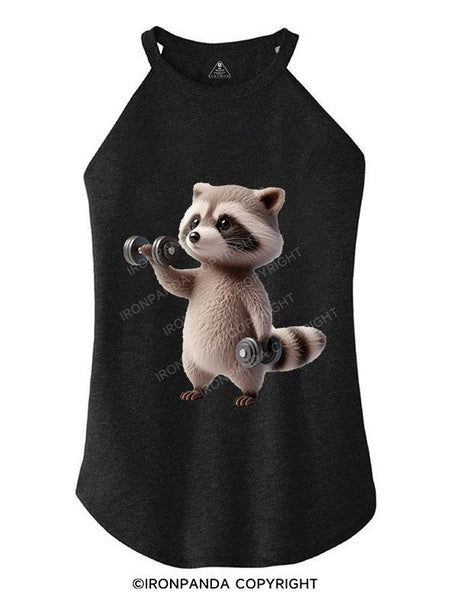 PUMPED-UP RACCOON ON THE GRIND TRI ROCKER COTTON TANK