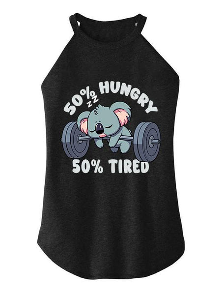 KOALA 50% HUNGRY 50% TIRED TRI ROCKER COTTON TANK