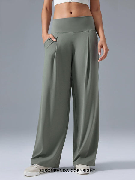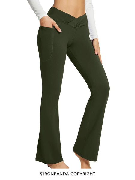 High Waist Cross Wide Leg Dark Green Yoga Pants