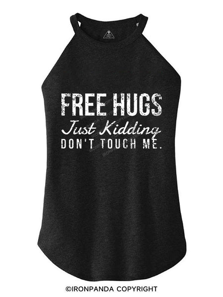 Free Hugs Just Kidding Don't Touch Me TRI ROCKER COTTON TANK
