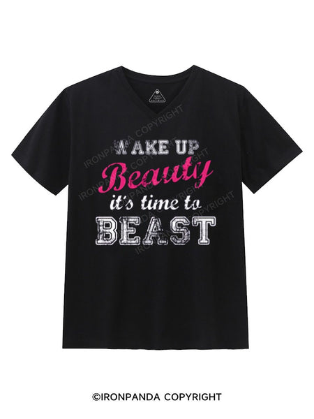 Wake Up Beauty It's Time to Beast Gym V-neck Shirt