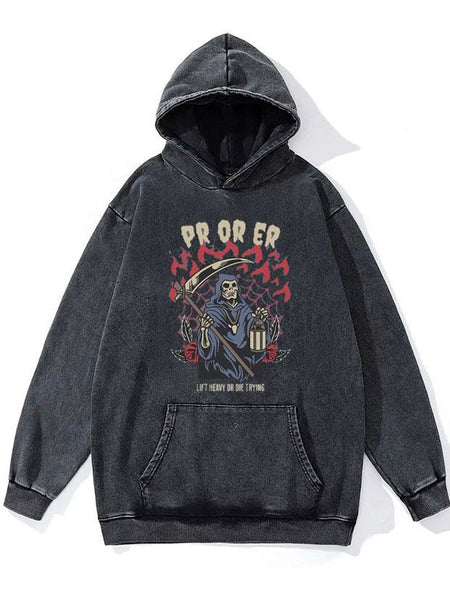Pr or Er Lift heavy or die trying WASHED GYM HOODIE