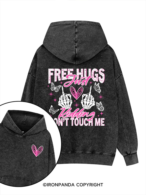 Free Hugs Just Kidding Don't Touch Me Printed Washed Gym Hoodie