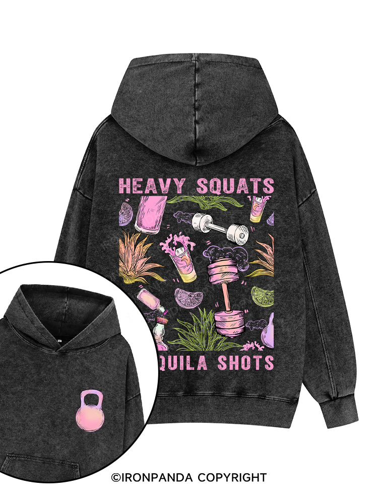 heavy squats & tequila shots Printed Washed Gym Hoodie