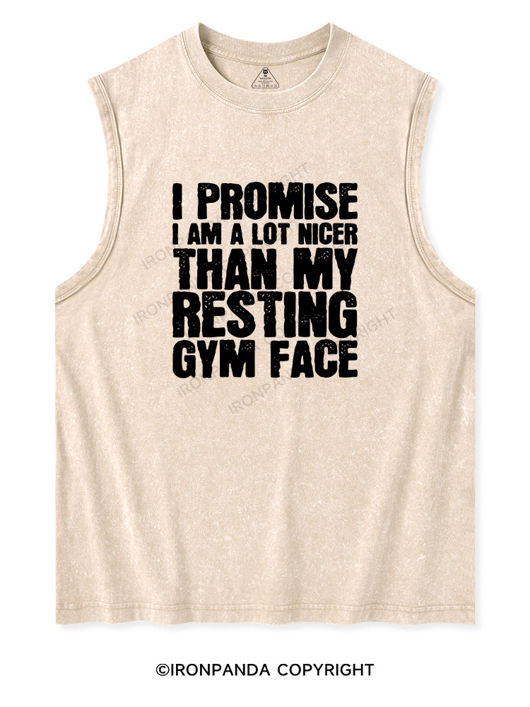 I PROMISE I AM A LOT NICER THAN MY RESTING GYM FACE Washed Tank