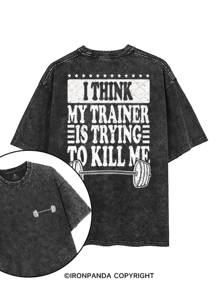 I THINK MY TRAINER IS TRYING TO KILL ME printed Gym Shirt