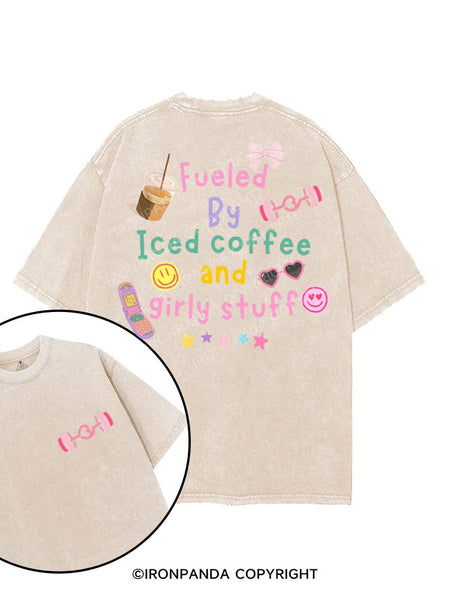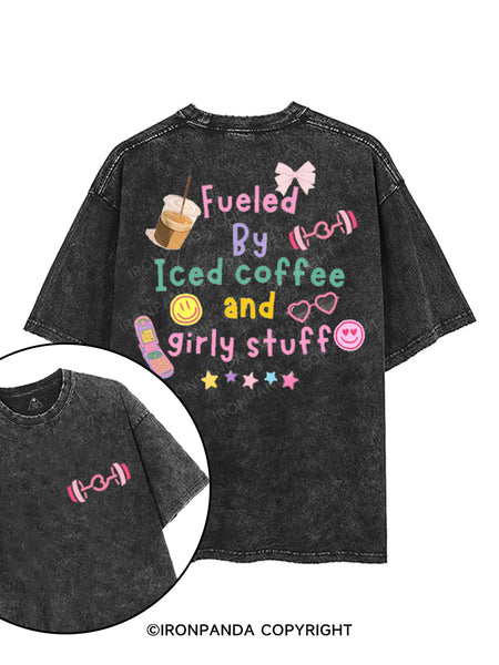 FUELED BY ICED COFFEE AND GIRLY STUFF printed Gym Shirt