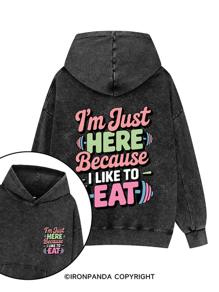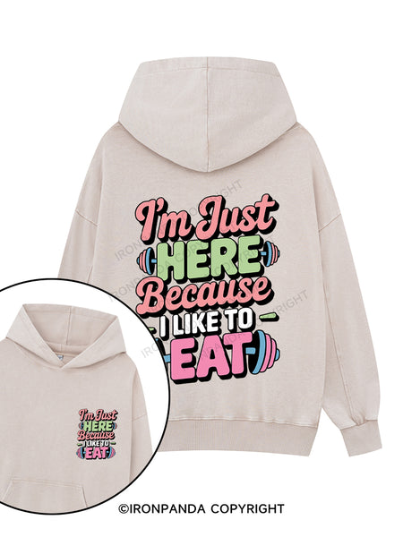 I'M JUST HERE BECAUSE I LIKE TO EAT Printed Washed Gym Hoodie