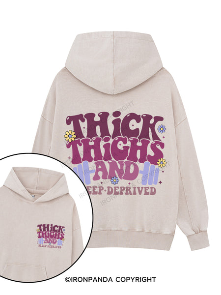 Thick Thighs And Sleep Deprived Printed Washed Gym Hoodie