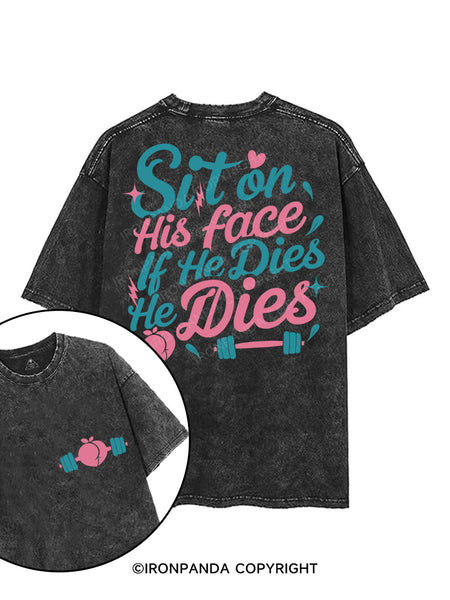 SIT ON HIS FACE IF HE DIES HE DIES printed Gym Shirt