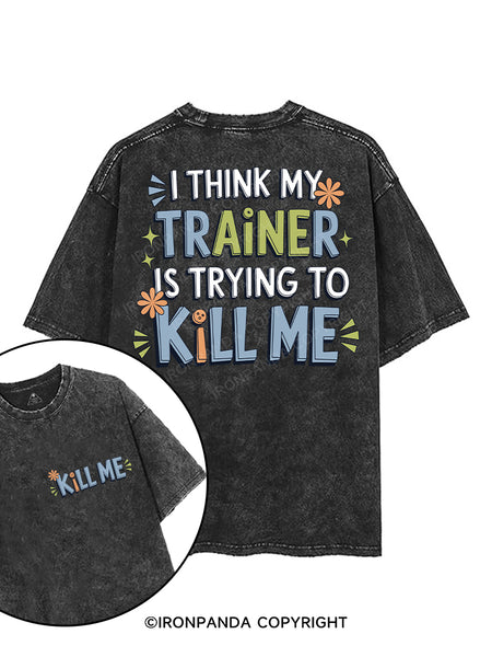 I THINK MY TRAINER IS TRYING TO KILL ME printed Gym Shirt