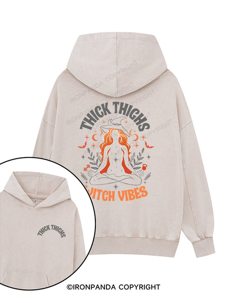 THICK THIGHS WITCH VIBES Printed Washed Gym Hoodie