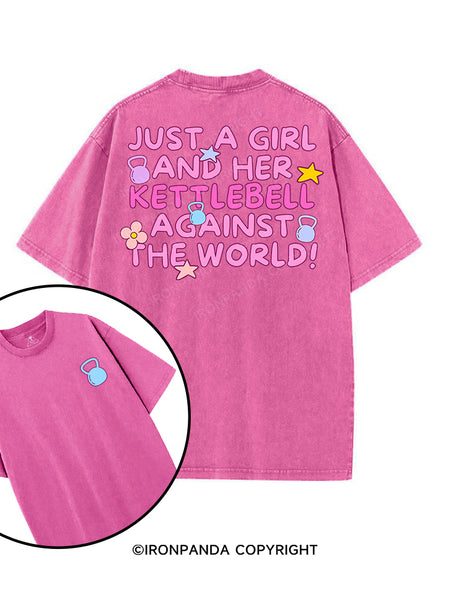 JUST A GIRL AND HER KETTLEBELL AGAINST THE WORLD printed Gym Shirt