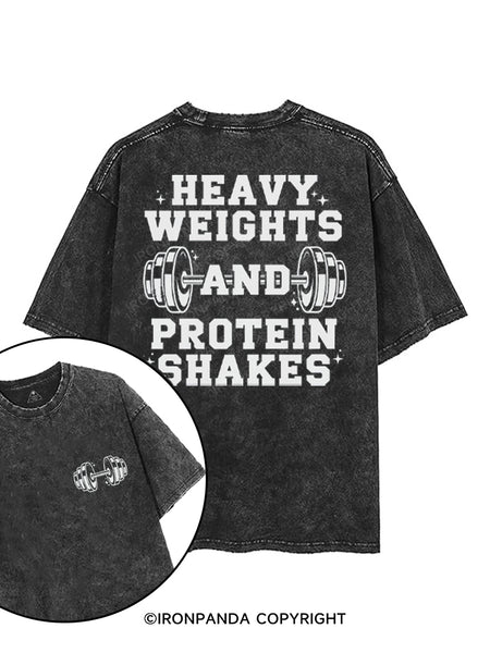 HEAVY WEIGHTS AND PROTEIN SHAKES printed Gym Shirt