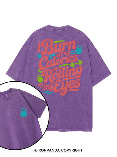 I BURN OFF MY CALORIES BY ROLLING MY EYES printed Gym Shirt