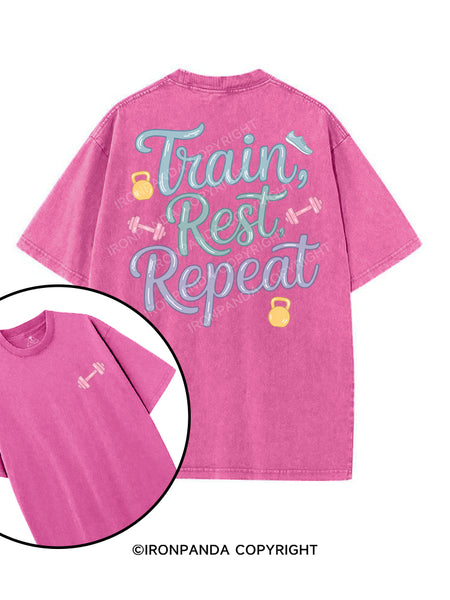 TRAIN REST REPEAT printed Gym Shirt