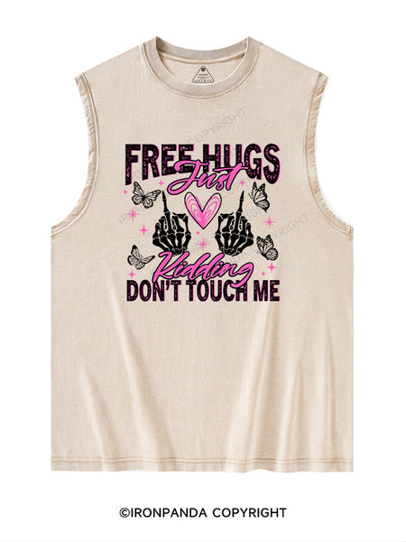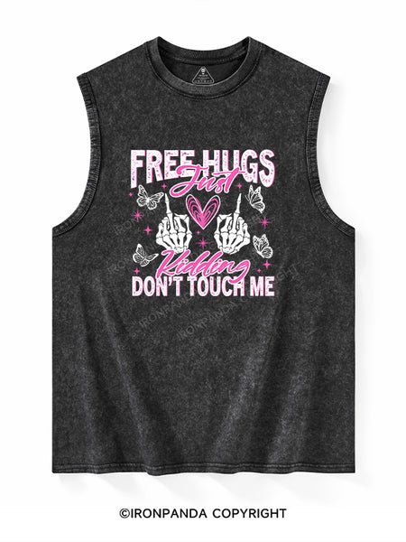 Free Hugs Just Kidding Don't Touch Me Washed Tank
