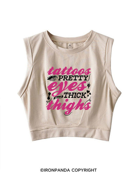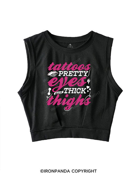 TATTOOS PRETTY EYES AND THICK THIGHS SLEEVELESS CROP TOPS
